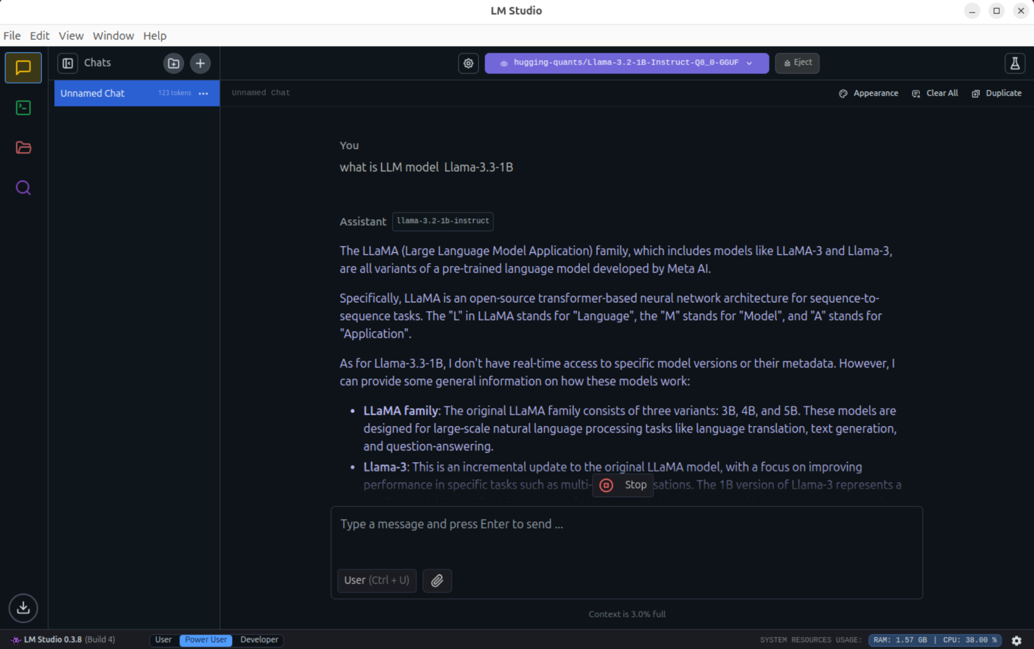 - Kies een nieuw gesprek en selecteer het geladen model.